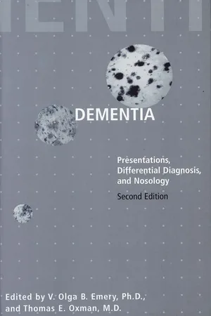 In this new edition of the acclaimed Dementia: Presentations, Differential Diagnosis, and Nosology, V. Olga B. Emery, Ph.D., and Thomas E. Oxman, M.D., bring together a distinguished group of medical authorities—including many who have done seminal research in this field—to discuss the spectrum of dementing disorders and explain their overlap, presentations, and differential diagnosis. The chapters present original data as well as material from the authors' clinical experiences. Current classification systems are evaluated and modified to better account for common presentations of dementia.