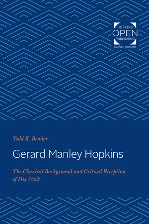 Bender's study suggests two highly controversial positons: first, that although Hopkins is one of the most original voices in English, his poetry is within a tradition insufficiently recognized by modern critics; and second, that the effect of careful and sympathetic study of classical literature can induce quite the opposite of a neoclassical style in English.