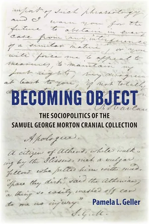 This book considers the vast collection of skulls amassed by Samuel Morton in the first half of the nineteenth century. Craniometric studies undertaken by this Philadelphia physician and natural historian, as previous writers have noted, advanced scientific racism. In Becoming Object, Pamela Geller shows that while the characterization is accurate, it is also oversimplified. Geller uses a biohistoric approach, which examines skeletal remains and archival sources, to take a close look at the times in which Morton lived, his work, and its complicated legacy.