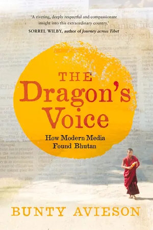 Bhutan Observer, she admires the paper's strong social conscience, but finds her expectations challenged in a country where spirituality and personal happiness are prioritized over work. Avieson also witnesses the tensions that arise as a Buddhist kingdom makes the transition to democracy. The courtship ritual of "night-hunting" and the nation's first public demonstration become controversial news items, while journalists must overcome traditional social hierarchies to keep politicians accountable. With a unique blend of memoir and reportage,