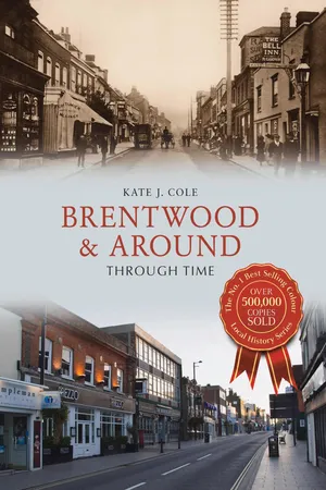Brentwood is the principal town in the Essex borough of Brentwood. The town was established in the twelfth century as a clearing within the great forest of Essex, which covered much of the area. Wood was burnt here (hence 'burnt wood') and people settled in the vicinity, attracted initially by the old Roman road from London to Colchester. The fledging medieval town became popular with pilgrims travelling from the north and east of England on their quest to worship at the shrine of St Thomas à Becket in Canterbury Cathedral. During the Peasants' Revolt of the 1380s, some of the agitators met in the town's inns and it was in Brentwood that the first event of the revolt took place. The arrival of the railway in 1840 had a major impact on the town, providing fast links to London and bringing new industry. Brentwood is the home of many famous faces and places, including being the setting of cult reality television programme The Only Way Is Essex. In Brentwood & Around Through Time author Kate Cole invites the reader on a captivating photographic journey of old and new. The book showcases many historical places and everyday life in Brentwood and the surrounding area, including Hutton, Shenfield, and Warley.