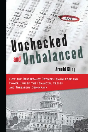 Yes, you can access Unchecked and Unbalanced by Arnold Kling in PDF and/or ePUB format, as well as other popular books in Politics & International Relations & Economic Policy. We have over one million books available in our catalogue for you to explore.