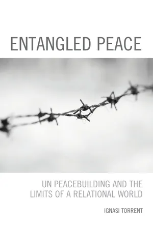 This book unfolds an exploratory journey intended to scrutinise the suitability of entanglements and relations as a mode of thinking and seeing peacebuilding events. Through a reflection upon the UN's limited results in the endeavour towards securing lasting peace in war-torn scenarios, Torrent critically engages with three relevant debates in contemporary peacebuilding literature, including the inclusion of 'the locals', the achievement of organisational system-wide coherence and the increasingly questioned agential condition of peacebuilding actors. Inattentive to the relational vulnerability of involved stakeholders, it is suggested that the UN seeks to secure a totalising modern distory, defined in the book as a story that undoes other stories. Whilst affirming the entangled ontogenesis of actors and processes in the conflict-affected configuration, Entangled Peace also delves into a cautionary argument about what the author refers to as entanglement fetishism, namely the celebratory, normative, deterministic and exclusionary projection of a relational world. Inspired by Alfred North Whitehead, Entangled Peace is an invitation to speculate over the peacebuilding milieu, and by extension the broader theatre of the real, as radical openness, in which events emanate from the collision of an infinite multiplicity of possible worlds.