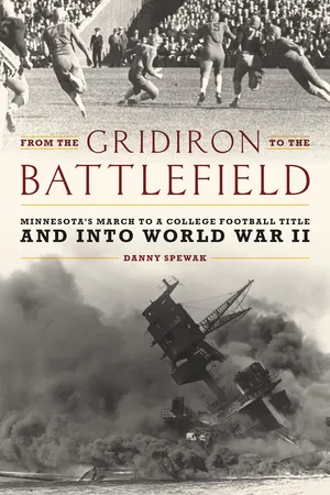 In From the Gridiron to the Battlefield, Danny Spewak shares the struggles and triumphs of the Golden Gophers' 1941 season, recalling how players battled on the field even with the threat of war hanging over their heads. When the United States finally entered the war, every member of the team participated in the war effort in one way or another. As Spewak recounts, some players remained stateside in the U.S. Navy, others sailed to the Pacific Theater and faced direct combat at Iwo Jima, while another earned a Purple Heart for his heroism at Normandy.