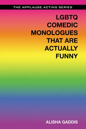 Yes, you can access LGBTQ Comedic Monologues That Are Actually Funny by Alisha Gaddis in PDF and/or ePUB format, as well as other popular books in Media & Performing Arts & Acting & Auditioning. We have over one million books available in our catalogue for you to explore.