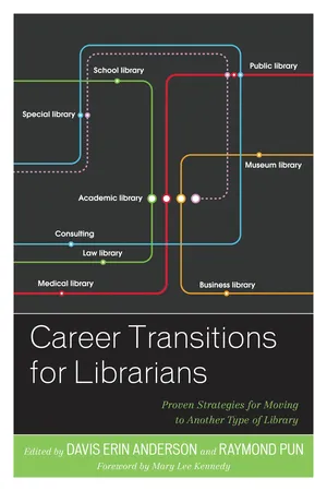Yes, you can access Career Transitions for Librarians by Davis Erin Anderson,Raymond Pun in PDF and/or ePUB format, as well as other popular books in Languages & Linguistics & Library & Information Science. We have over one million books available in our catalogue for you to explore.