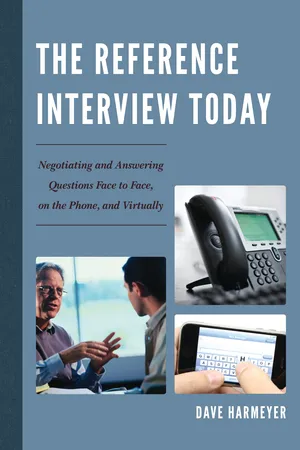 Yes, you can access The Reference Interview Today by Dave Harmeyer in PDF and/or ePUB format, as well as other popular books in Languages & Linguistics & Library & Information Science. We have over one million books available in our catalogue for you to explore.