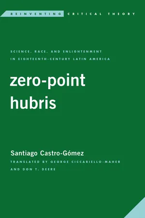 Operating within the framework of postcolonial studies and decolonial theory, this important work starts from the assumption that the violence exercised by European colonialism was not only physical and economic, but also 'epistemic'. Santiago Castro-Gómez argues that toward the end of the eighteenth century, this epistemic violence of the Spanish Empire assumed a specific form: zero-point hubris. The 'many forms of knowing' were integrated into a chronological hierarchy in which scientific-enlightened knowledge appears at the highest point on the cognitive scale, while all other epistemes are seen as constituting its past. Enlightened criollo thinkers did not hesitate to situate the Black, Indigenous, and mestizo peoples of New Granada in the lowest position on this cognitive scale. Castro-Gómez argues that in the colonial periphery of the Spanish Americas, Enlightenment constituted not only the position of epistemic distance separating science from all other knowledges, but also the position of ethnic distance separating the criollos from the 'castes'. Epistemic violence—and not only physical violence—is thereby found at the very origin of Colombian nationality.