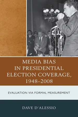 Yes, you can access Media Bias in Presidential Election Coverage 1948-2008 by David W. D'Alessio in PDF and/or ePUB format, as well as other popular books in Politics & International Relations & Communication Studies. We have over one million books available in our catalogue for you to explore.