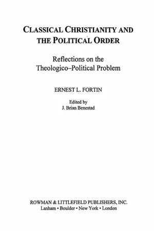 Yes, you can access Classical Christianity and the Political Order by Ernest L. Fortin, Brian J. Benestad in PDF and/or ePUB format, as well as other popular books in Philosophy & Ancient & Classical Philosophy. We have over one million books available in our catalogue for you to explore.