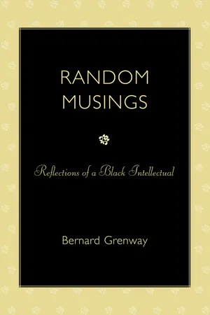 Random Musings: Reflections of a Black Intellectual focuses on the various racial and cultural challenges facing African-Americans in the context of present day educational, political, and historical realities. The text touches on a wide array of issues, including the psychology of race and power, the plight of the modern black intellectual, and the need to enhance the educational standing of American citizens across the board. Dr. Grenway uses the events of his life, in the form of random musings, to examine the much overlooked "black perspective" on American life.