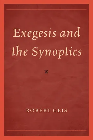 Yes, you can access Exegesis and the Synoptics by Robert Geis in PDF and/or ePUB format, as well as other popular books in Theology & Religion & Biblical Commentary. We have over one million books available in our catalogue for you to explore.