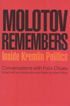 Yes, you can access Molotov Remembers by V. M. Molotov,Feliz Chuev, Albert Resis in PDF and/or ePUB format, as well as other popular books in Politics & International Relations & Historical Biographies. We have over one million books available in our catalogue for you to explore.