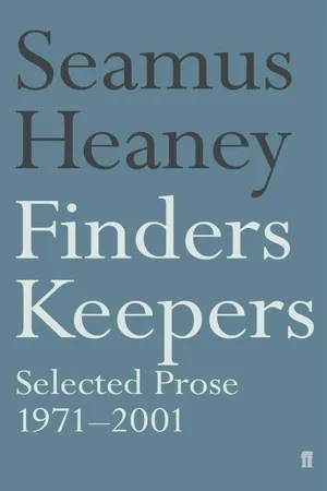 Finders Keepers is a gathering of Seamus Heaney's prose of three decades. Whether autobiographical, topical or specifically literary, these essays and lectures circle the central preoccupying questions: 'How should a poet properly live and write? What is his relationship to be to his own voice, his own place, his literary heritage and the contemporary world?'