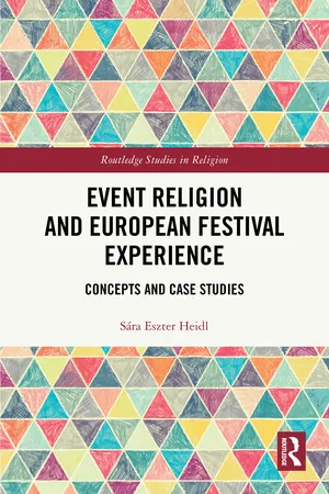 This book contributes to empirical research on festivals and presents a model of "event religion" for interpreting festival experiences from a religious studies perspective. It features a comparison of three Hungarian case studies with different backgrounds - a mindfulness festival, a Catholic event, and a rock-metal music festival. The author suggests that examining event experiences along the four dimensions of spatiotemporality, symbols, community, and inward experience provides a conceptual framework for understanding contemporary alternative religious beliefs, behaviours, and experiences. She also utilises "religionesque" as an umbrella term for the various concepts that describe religion-related experiences and approaches. The book will be of interest to scholars of religion, sociology, anthropology, and others with a focus on events and festivals.
