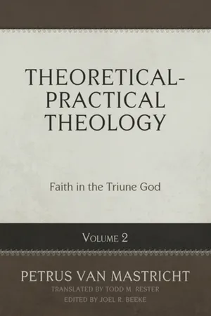 Volume 2, Faith in the Triune God , delivers a thorough treatment of the doctrine of God. Mastricht begins his consideration of theology proper with a substantial chapter on saving faith, reminding readers that contemplating God apart from true faith will fall short of the salvation of their soul. Mastricht then discusses the subject of God in three main divisions. First, he treats the existence of God and our knowledge of him. Second, he discusses the divine essence as it is revealed through the names and attributes of God. Third, Mastricht carefully details the Trinitarian nature of the one God who subsists in three persons.
