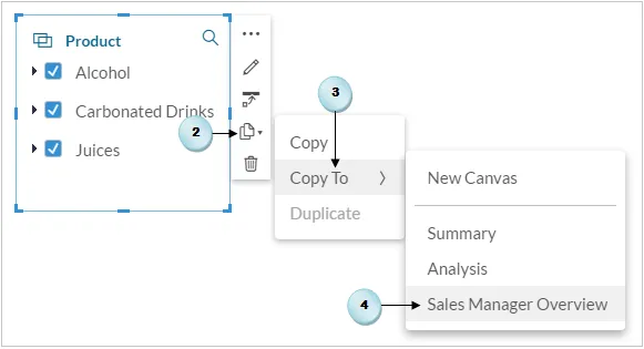 - Repeat steps 2 to 4 to also copy the location filter to the Sales Manager Overview page.
