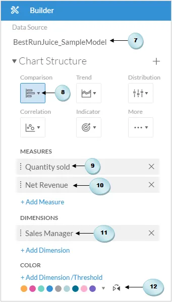 - Finally, click on the Add Dimension link in the Dimensions section, and select Sales Manager as the chart's dimension.