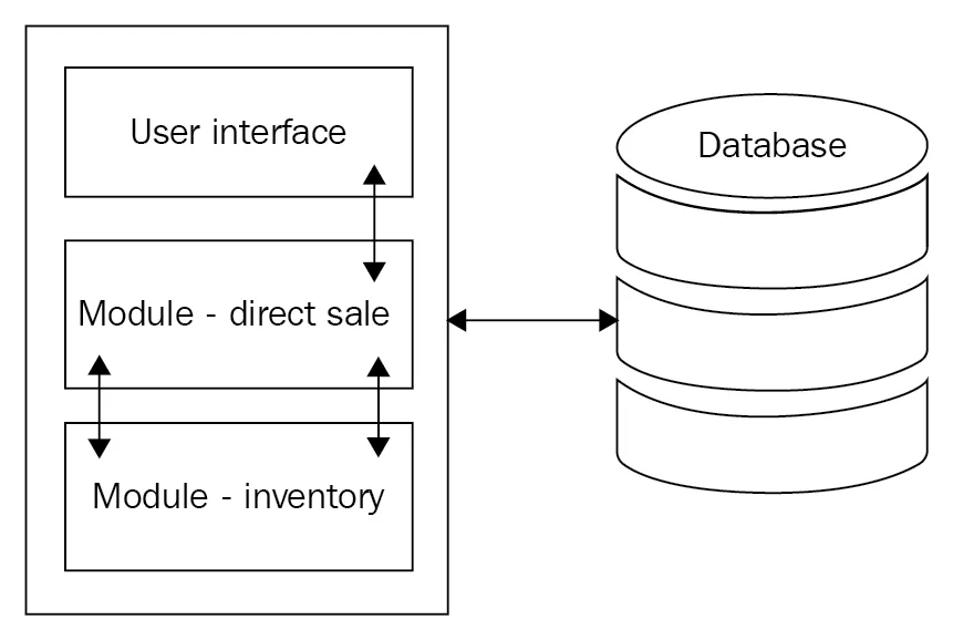 - Database access: This houses the complete functionality for accessing the database for the purpose of querying and persisting objects. A widely accepted rule is that it is utilized through business modules and never directly through user-facing components.