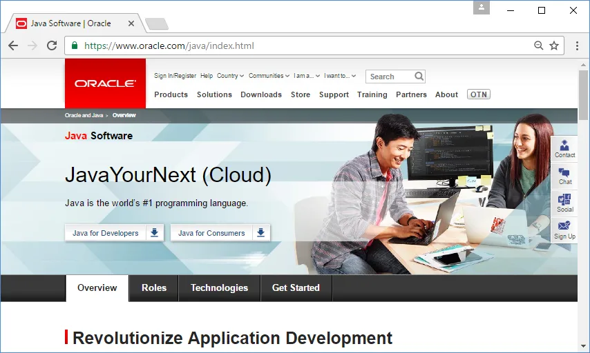 - At the time of writing this book, this page contained a Java for Developers button. Once you click on it, you will be redirected to the Software Downloads section.