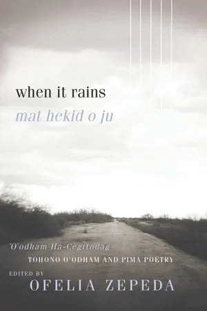 The poems capture brief moments of beauty, the loving bond between family members, and a deep appreciation of Tohono O'odham culture and traditions, as well as reverent feelings about the landscape and wildlife native to the Southwest. A motif of rain and water is woven throughout the poetry in When It Rains, tying in the collection's title to the importance of this life-giving and sustaining resource to the Tohono O'odham people. With the poems in both O'odham and English, the volume serves as an important reminder of the beauty and changeability of the O'odham language.