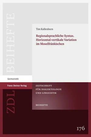 - 1 EINLEITUNG: SYNTHESE VON REGIONALSPRACHENFORSCHUNG UND DIALEKTSYNTAX ZUR REGIONALSPRACHLICHEN SYNTAX