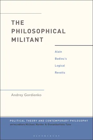 By making a case for the French philosopher as a combative polemicist rather than a builder of grand ontological systems, The Philosophical Militant advances a new imperative for philosophy ā to privilege active engagement with the present. Tracing Badiou's engagement with canonical philosophers, putting him in dialogue with contemporary theorists, and exploring the relevance of his ideas to the politics of Trump and the COVID-19 pandemic, this text foregrounds the actuality of Badiou's work. Not limiting itself to commentary on the philosopher's canonical texts, Gordienko aspires to think the contemporary moment with Badiou.