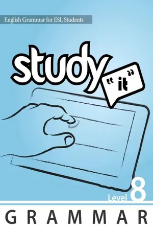 The Study It Grammar series is an easy-to-use integrated skills ESL textbook for ESL students, language teachers and English language programs in schools or language schools.Ā The Study It English Grammar series consists of 8 different levels. Book 8 of 8 is for Advanced English as a Second Language learners.Ā It is an exciting new series for teachers interested in Mobile Learning, Project-Based Learning or Flipping the Classroom