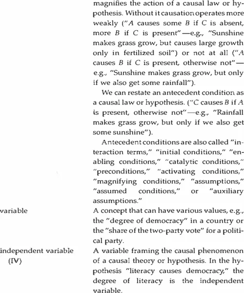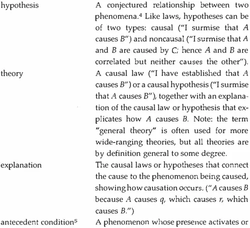Definitions of the term “theory” offered by philosophers of social science are cryptic and diverse.1 I recommend the following as a simple framework that captures their main meaning while also spelling out elements they often omit.
