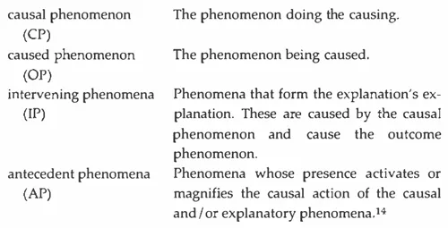 Specific explanations are composed of causal, caused, intervening, and antecedent phenomena:13