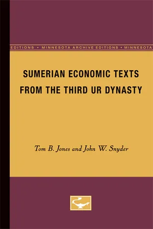 Sumerian Economic Texts from the Third Ur Dynasty was first published in 1961. Minnesota Archive Editions uses digital technology to make long-unavailable books once again accessible, and are published unaltered from the original University of Minnesota Press editions.