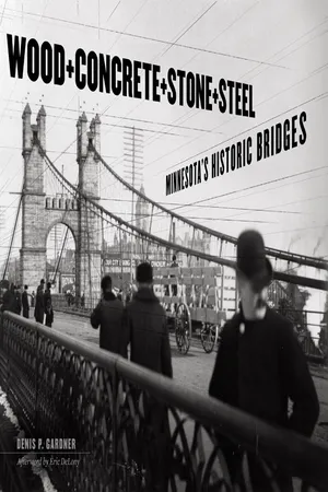 Historian Denis P. Gardner documents and celebrates a wide range of the state’s rural and urban spans, telling the remarkable stories of their construction and impact on Minnesota life and culture. From Pratt trusses to bowstring arches, Wood, Concrete, Stone, and Steel describes nearly every bridge type found in Minnesota, including railroad spans, and features more than 225 illustrations of historical and extant bridges. Gardner details the development of engineering and construction innovations (complete with a guide to trusses) and traces the fascinating politics and personalities behind the task of creating and maintaining safe, and often beautiful, crossings.