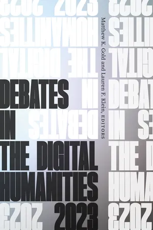 Where do the digital humanities stand in 2023? Debates in the Digital Humanities 2023 presents a state-of-the-field vision of digital humanities amid rising social, political, economic, and environmental crises; a global pandemic; and the deepening of austerity regimes in U.S. higher education. Providing a look not just at where DH stands but also where it is going, this fourth volume in the Debates in the Digital Humanities series features both established scholars and emerging voices pushing the field’s boundaries, asking thorny questions, and providing space for practitioners to bring to the fore their research and their hopes for future directions in the field. Carrying forward the themes of political and social engagement present in the series throughout, it includes crucial contributions to the field—from a vital forum centered on the voices of Black women scholars, manifestos from feminist and Latinx perspectives on data and DH, and a consideration of Indigenous data and artificial intelligence, to essays that range across topics such as the relation of DH to critical race theory, capital, and accessibility.
