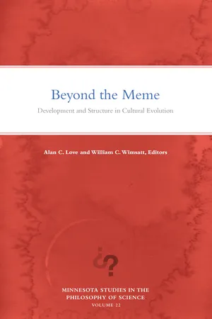 In Beyond the Meme, William C. Wimsatt and Alan C. Love assemble interdisciplinary perspectives on cultural evolution, providing a nuanced understanding of it as a process in which dynamic structures interact on different scales of size and time. By focusing on the full range of evolutionary processes across distinct contexts, from rice farming to scientific reasoning, this volume demonstrates how a thick understanding of change in culture emerges from multiple disciplinary vantage points, each of which is required to understand cultural evolution in all its complexity. The editors provide an extensive introductory essay to contextualize the volume, and Wimsatt contributes a separate chapter that systematically organizes the conceptual geography of cultural processes and phenomena.