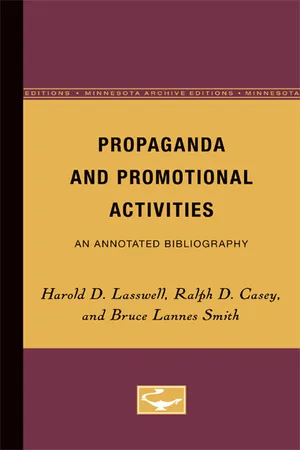 Yes, you can access Propaganda and Promotional Activities by Harold Lasswell,Ralph Casey,Bruce Smith in PDF and/or ePUB format. We have over one million books available in our catalogue for you to explore.
