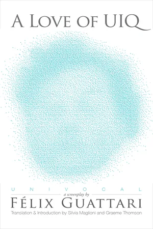 Throughout a large part of the 1980s, Félix Guattari, known for his collaborations with Gilles Deleuze and his experimental and groundbreaking practices in psychotherapy, decides to shift his experimental work into a different medium of artistic and creative thought practice: the world of science fiction. Part self-analysis, part cinematic expression of his theoretical work, Guattari’s screenplay merges his theoretical concepts with his passion for comic books, free radio movements, and film. So begins Guattari’s journey to write a screenplay wherein a group of squatters makes contact with a superior intelligence coming from the infinitely small Universe of the Infra-quark (UIQ). Guattari worked feverishly on his film, attempting to secure a budget, traveling to Hollywood, and enlisting the help of American screenwriter Robert Kramer. But the film would never see the light of day. Through the important archival work of artists, Silvia Maglioni and Graeme Thomson, Guattari’s script is now published here, for the first time in English.