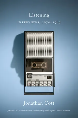 “All I really need to do is simply ask a question,” Jonathan Cott occasionally reminds himself. “And then listen.” It sounds simple, but in fact few have taken the art of asking questions to such heights—and depths—as Jonathan Cott, whom Jan Morris called “an incomparable interviewer,” one whose skill, according to the great interviewer and oral historian Studs Terkel, “is artless yet impassioned and knowing.”