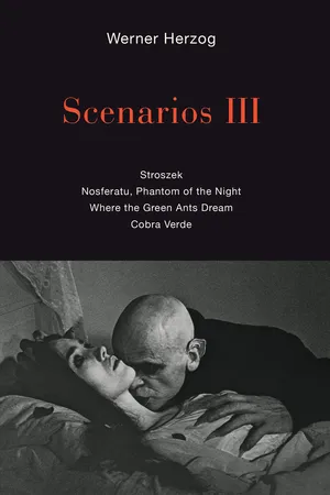 Continuing a series that Publishers Weekly pronounced “compulsively readable . . . equal parts challenging and satisfying, infuriating and enlightening,” Scenarios III presents, for the first time in English, the shape-shifting scripts for four of Werner Herzog’s early films: Stroszek; Nosferatu, Phantom of the Night; Where the Green Ants Dream; and Cobra Verde. We can observe Herzog’s working vision as each of these scenarios unfolds in a form often dramatically different from the film’s final version—as, in his own words, Herzog works himself up into “this kind of frenzy of high-caliber language and concepts and beauty.”