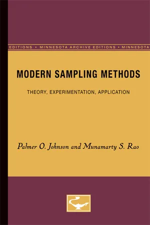 Modern Sampling Methods: Theory, Experimentation, Application was first published in 1959. Minnesota Archive Editions uses digital technology to make long-unavailable books once again accessible, and are published unaltered from the original University of Minnesota Press editions.Of both theoretical and practical use to statisticians and research workers using sampling techniques, this book describes five new multi-stage sampling models. The models are described, compared, and evaluated through a skillfully designed experiment. The number of stages in all five models is the same; the manner in which they differ is in the particular sampling technique applied at each of the several stages. Recommendations are given on the choice of the most suitable model for a given practical situation. A mathematical appendix presents two lemmas that are useful for derivation of sampling formulas in multi-stage sampling.