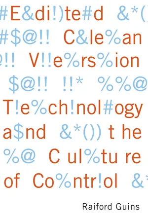 Not long ago it would have been an absurd idea to purchase a television, CD or MP3 or DVD player, computer software, or game console with the intention of limiting its capabilities. However, as Raiford Guins demonstrates in Edited Clean Version, today's media technology is marketed and sold for what it does not contain and what it will not deliver. TVs equipped with V-chips, Internet filters, editing DVD players, clean-version CDs and MP3s, and game consoles with parental control features can block out, monitor, disable, and filter information. As Guins argues in this provocative book, consumers now find themselves in new relationships with their everyday media in which they inscribe their viewing, listening, and playing experiences with self-prescribed and technologically enabled values and morals. Censorial practices are not so much enacted on media by regulatory bodies today as they are in our media technology. According to Guins, these new "control technologies" are designed to embody an ethos of neoliberal governance—through the very media that have been previously presumed to warrant management, legislation, and policing. Repositioned within a discourse of empowerment, security, and choice, the action of regulation, he reveals, has been relocated into the hands of users.