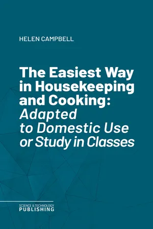 The Easiest Way in Housekeeping and Cooking: Adapted to Domestic Use or Study in Classes is a comprehensive and practical guidebook originally published in the late 19th century by Helen Campbell. Designed to simplify the art of managing a household, this book offers clear, accessible instructions for both novice and experienced homemakers. It covers a wide range of topics essential to efficient home management, including the selection and care of kitchen utensils, the organization of household tasks, and the principles of nutrition and food preparation. The book is structured to provide step-by-step guidance on daily, weekly, and seasonal housekeeping routines, ensuring cleanliness, order, and comfort in the home. It delves into the science of cooking, offering detailed explanations of various cooking methods, the use of different ingredients, and the importance of balanced meals. Recipes are presented in a straightforward manner, with an emphasis on economy, health, and ease of preparation, making them suitable for families of all sizes and incomes. In addition to practical advice, The Easiest Way in Housekeeping and Cooking addresses the social and moral aspects of domestic life, encouraging readers to approach household duties with intelligence and care. The book also includes sections on laundry, cleaning, food preservation, and the management of household expenses, making it a valuable resource for anyone seeking to improve their domestic skills. With its blend of practical instruction, scientific insight, and thoughtful commentary, Helen Campbell's work remains a timeless reference for those interested in the history of domestic science, as well as for modern readers looking to master the essentials of housekeeping and cooking.