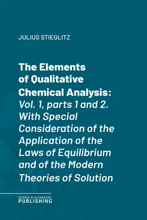 - The Elements of Qualitative Chemical Analysis. Volume I, Parts I and II. Fundamental Principles and Their Application. By Julius Stieglitz.