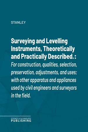 Yes, you can access Surveying and Levelling Instruments, Theoretically and Practically Described. by Stanley in PDF and/or ePUB format, as well as other popular books in Technology & Engineering & Chemical & Biochemical Engineering. We have over one million books available in our catalogue for you to explore.
