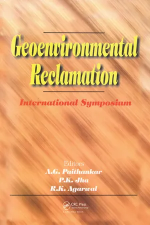 Yes, you can access Geoenvironmental Reclamation by R.K. Agarwal,P.K. Jha,A.G. Paithankar in PDF and/or ePUB format, as well as other popular books in Technology & Engineering & Environmental Conservation & Protection. We have over one million books available in our catalogue for you to explore.