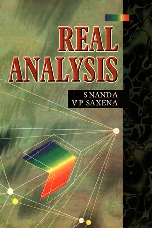 Yes, you can access Real Analysis by S. Nanda ; V.P. Saxena in PDF and/or ePUB format, as well as other popular books in Mathematics & Applied Mathematics. We have over one million books available in our catalogue for you to explore.