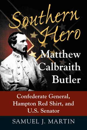 As a member of a distinguished South Carolina family, Matthew Calbraith Butler led a most interesting life. His cavalry service during the Civil War saw him rise from regimental captain to major general in command of a division. He began the war with Jeb Stuart and participated in all of his early campaigns. Butler was wounded in the battle at Brandy Station and lost his foot as a result, but he returned to duty and the battles outside of Richmond in 1864, then hurried South to resist Sherman's advance into South Carolina. Unlike many other Confederate generals, Butler remained influential after the War. He served in the U.S. Senate for eighteen years, oversaw the end of Reconstruction in South Carolina, and was a major general during the Spanish-American War.