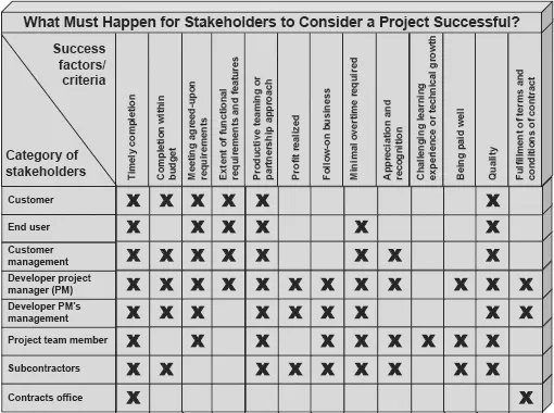 Figure 1-2 delineates each type of stakeholderās expectations with regard to project success.