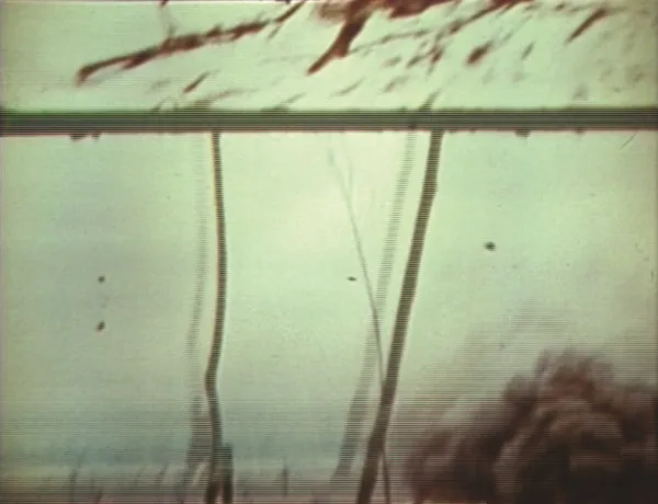 Figures 4 and 5. A prominent lens flare and frame displacement mar the image of the Kodachrome combat report in The Battle of Midway (John Ford, 1942).