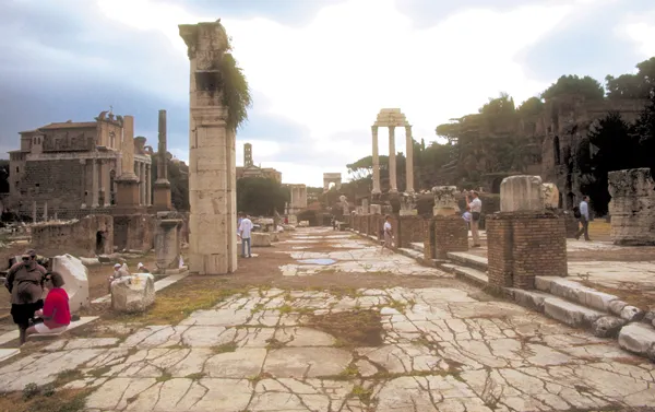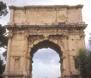 The Arch of Titus, built by Domitian to celebrate his brotherâs military victory over Jerusalem and Judea.