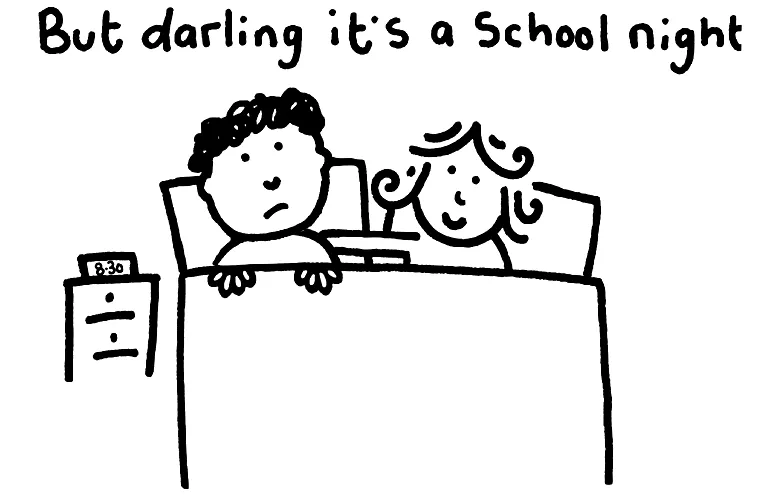 Hands up if youâre in a state of near-permanent exhaustion. Do you attend too many twilight meetings and have too much marking? And, honestly, although you adore most of the children, are there a few that you donât really like? Do your non-teaching friends think your job is easy? Do they drone on and on about a 3.30 p.m. finish and fourteen weeksâ holiday? Or, if they arenât saying it to your face, are you imagining theyâre saying it behind your back? Do you know how many weeks and days there are until the next half-term? Is your favourite thing to be tucked up in bed at 9 p.m.? Asleep. Hands up if you have forgotten the last time you had sex on a school night.